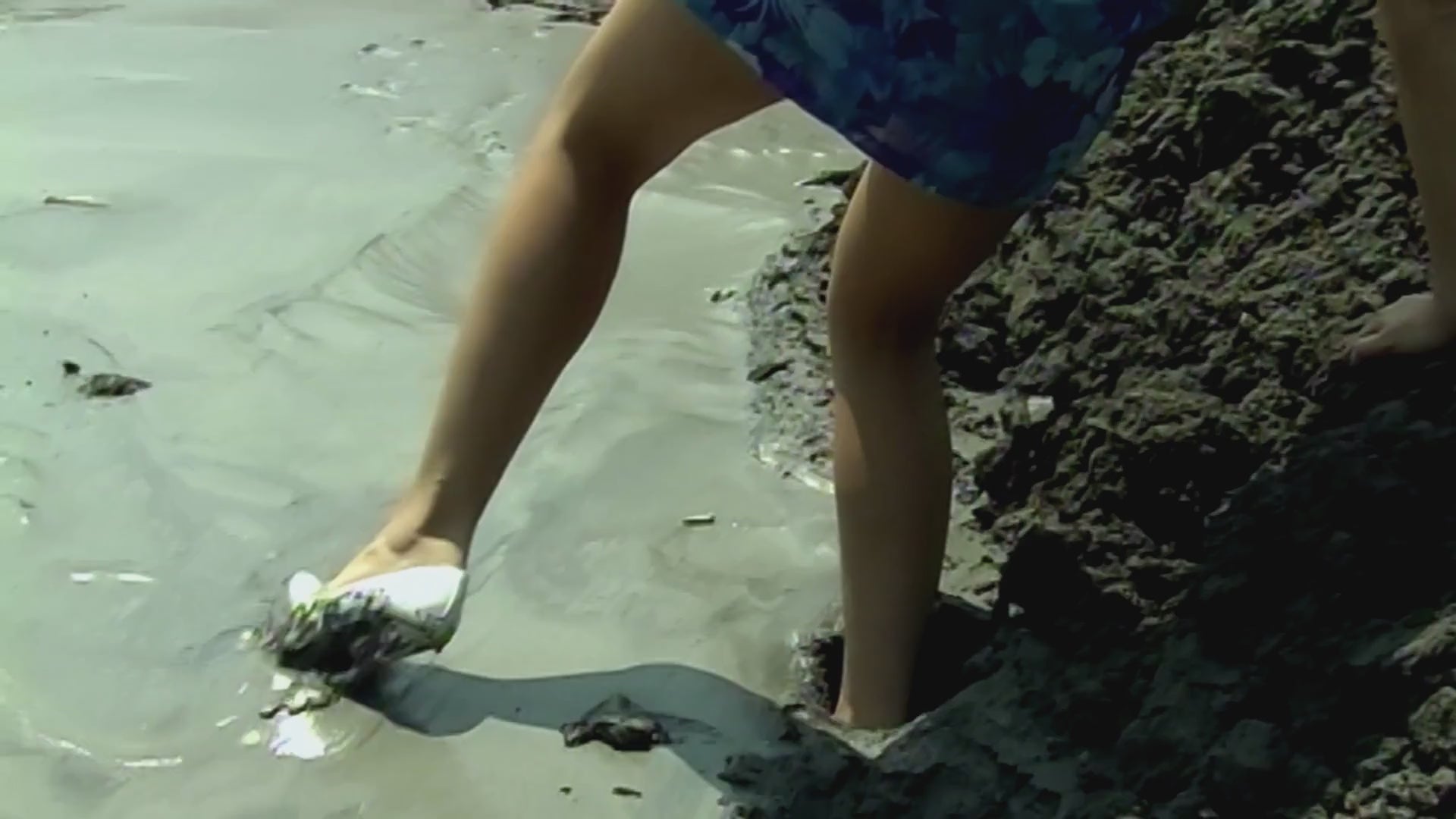 Carrie LaChance sinks into pure quicksand as the ground slowly pulls her down with no sign of release. A blue dress keeps and dark sunglasses add to this cool, untouchable edge even as the pit tightens its grip. Glossy suntan skin catches the light as mud pours around her legs sucking in her white patent high heel pumps with the unforgiving underneath. This video is from Carrie LaChance Gallery 57.