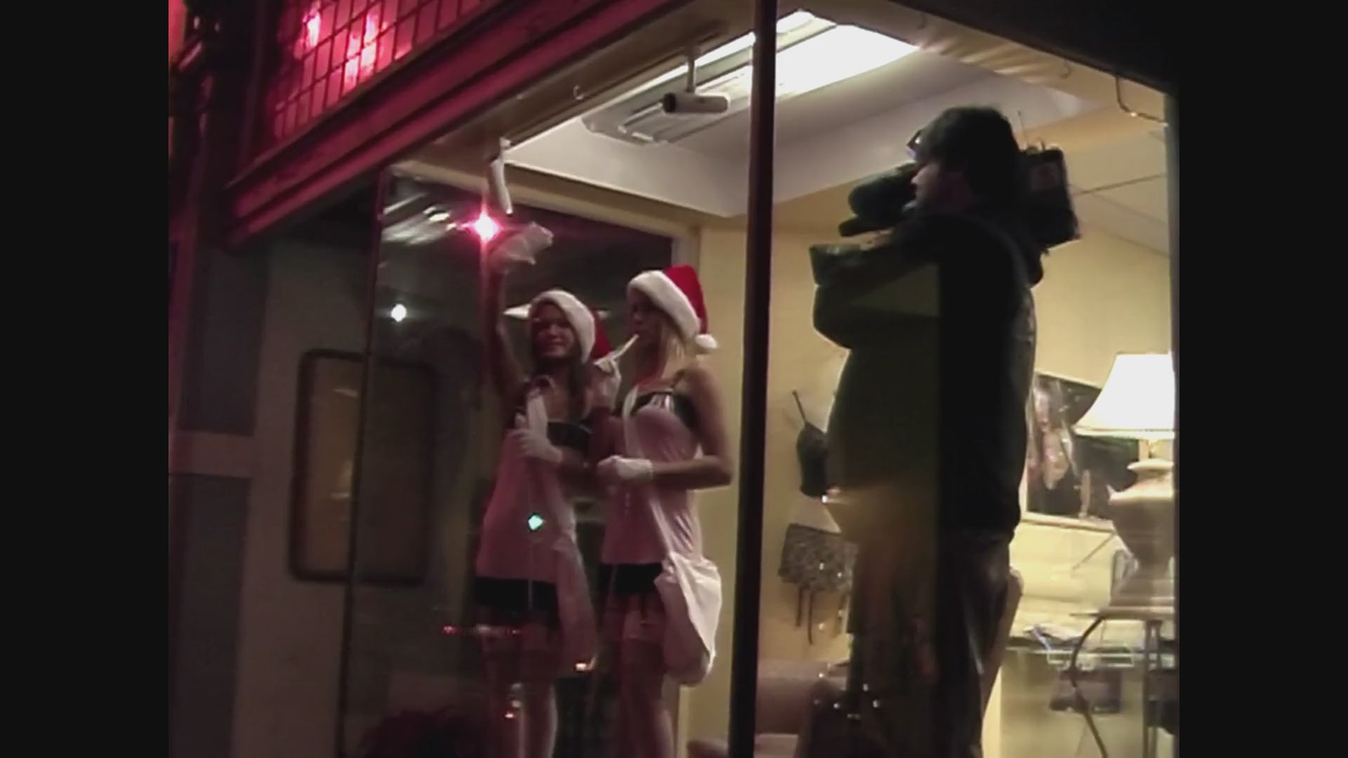 This is part B of our Spellbound video. It's christmas time and the shop across the street Spellbound Lingerie asked us if they could use Carrie LaChance and Monica Roach as lingerie models for their window display. Of course we said yes, but only if they allowed us to film it. Carrie and Monica are wearing matching white lingerie, white stockings and white patent high heel sandals. Video is from Doubleshot – Gallery #17