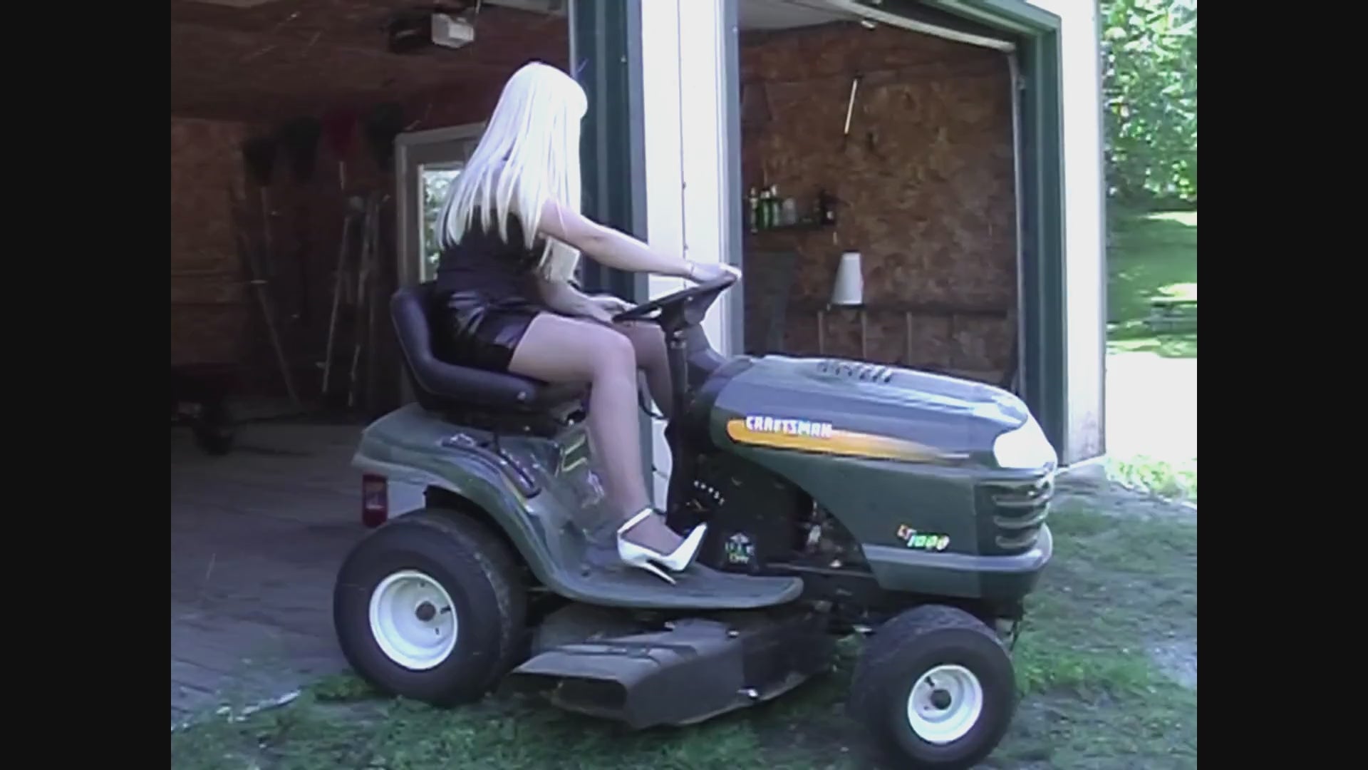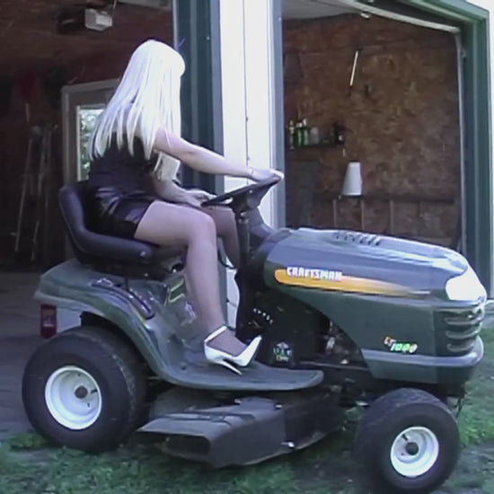 Carrie LaChance and Bailey Wasson drive over to a friends house to do some landscaping. They were kind enough to offer removing a shrubbery bush for an elderly man. The work starts out ok but they end up shredding the shrub down to a tiny nub. Carrie is wearing a red corset, patent leather mini skirt, and white patent high heel pumps. Bailey is wearing a red corset, leather mini skirt, and black patent high heel pumps. Video is from Carrie LaChance Gallery 10