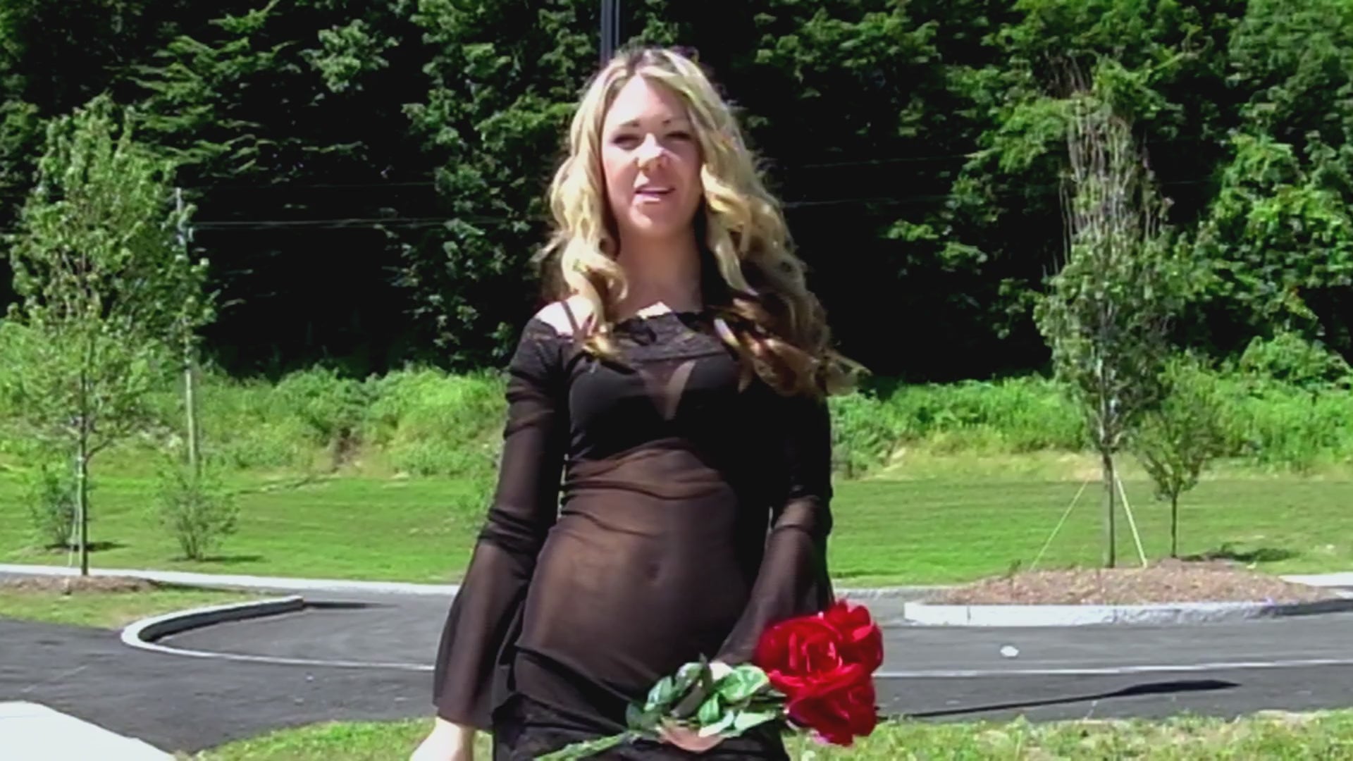 Out in the open air, Rene takes this set to the park and doesn’t dial anything back. Black lingerie sets the tone, a black bra and thong panties held tight with garters, sheer black stockings tracing every line as she moves through the space. Finished with black patent leather high heel sandals, the contrast between soft grass, daylight, and her controlled, deliberate presence makes the whole shoot feel exposed in all the right ways.! This video is from Rene Levasseur Gallery 3